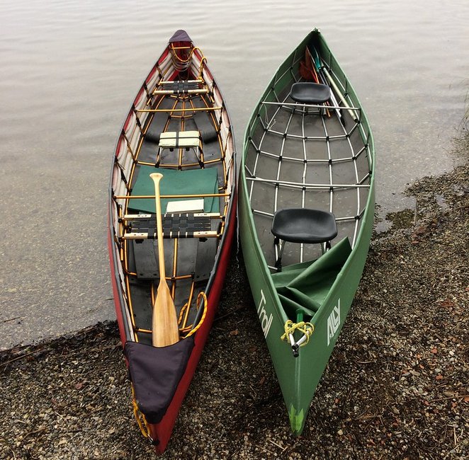 Ally 16,5 Ik zou wel kunnen zeggen dat we met de Ally alles (+meer) hebben gedaan wat je zo'n beetje met een kano kunt doen. Variërend van tochten op meren en rivieren waar het water zo weerkaatsend als een spiegel is en tussen golven en stromingen op open zee waar ik mij met gezond verstand geen tweede keer waag, plus alles wat er zo'n beetje tussen zit. Zijn koersvastheid is redelijk, een goede gewichtsindeling van de kano speelt hierbij ook een belangrijke rol. Voor zijn afmeting is zijn wendbaarheid vrij goed, ook op wild water. Zijn stabiliteit is eindeloos. De Ally is alleen met de grootste moeite of lompheid om te krijgen, iets dat één keer gelukt is tijdens een wildwater tocht in Australië. Op wild water houdt de Ally zich beter dan verwacht. Door zijn aluminium en rubber constructie geeft hij mee als een raftboot en wordt hij niet abrupt afgeremd als hij op een blokkerend rotsblok stoot, zoals vaak bij een houten of polyester kano gebeurt, maar glijd hij er als het waren overheen. Na een aantal dagen varen op wild water is het echter wel verstandig de kano regelmatig te checken of alles nog op de juiste plaats zit. Buizen willen nog wel eens verschuiven of losschieten. Het is maar twee keer voorgekomen dat de kano zodanig uit verband was dat we hem opnieuw in elkaar moesten zetten om hem weer goed in model te krijgen. Dit was echter wel na zeer ruig kanowerk en voor een periode van zo'n twee weken. Het is verstandig de stoeltjes wel met een extra touwtje te borgen omdat deze anders regelmatig los zal schieten en dit de rubber ondermat en uiteindelijk de bodem kan beschadigen.