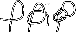Bij de derde manier leg je een knoop andersom rond het staande part, zodat als je aan het lopend eind trekt de lus opent.